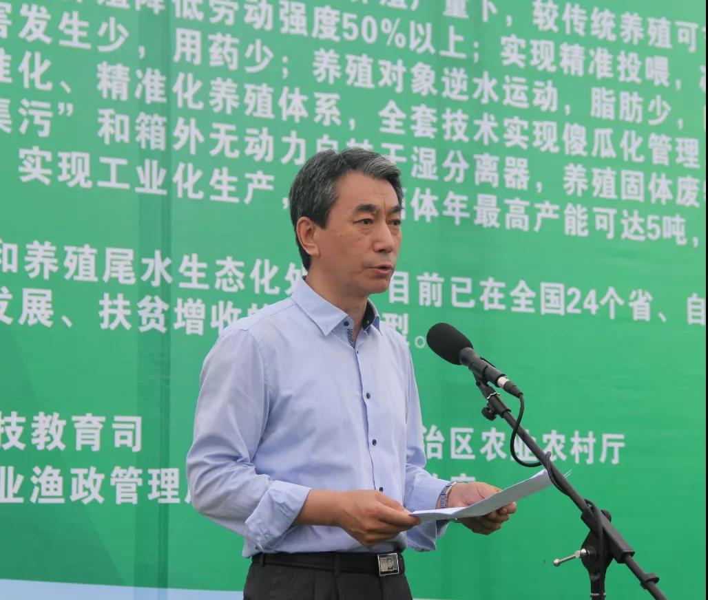 梁雄在講話中指出,自治區黨委、政府高度重視漁業發展,出臺了貫徹落實國家十部委《關于加快推進水產養殖業綠色發展的若干意見》的《實施意見》,提出實現現代漁業產業千億元的奮斗目標。2020年,安排支持漁業生產發展資金約1.6億元,在全區實施水產綠色健康養殖“五大行動”。截至今年上半年,全區發展池塘跑道式養魚水槽182條4.55萬立方米,深水抗風浪網箱966口305.8萬立方米;陸基圓池循環水養殖池575個12.47萬立方米;工廠化養殖車間面積13.4萬平方米;集裝箱養殖148個3700立方米;支持建設養殖(育苗)尾水治理試點和示范基地111個。